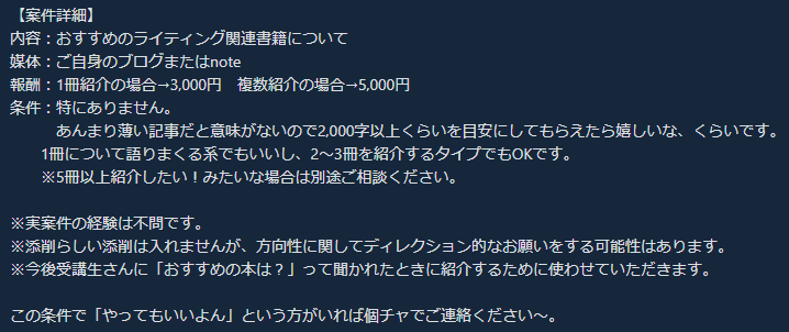 こちら常設の依頼としますので、気が向いた方はぜひ立候補してみてください♪